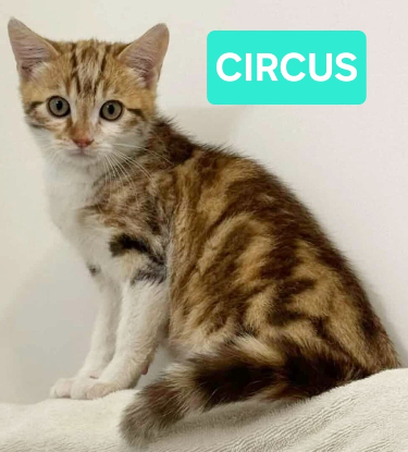 Circus est un chaton plein d’énergie, avec un vrai talent de grimpeur ! Plus timide que sa sœur Houdinie, il reste un peu méfiant au premier abord. Pourtant, il se laisse approcher et manipuler plus facilement qu’elle : on devine déjà un petit chat affectueux qui ne demande qu’à prendre confiance.