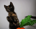 De nature craintive (c’est la plus craintive de la portée), elle se détend avec les personnes qu’elle connaît, fait même quelques ronrons sous les caresses, il faudra lui donner du temps et de la stabilité pour qu’elle fasse confiance ; dans les bonnes conditions, elle deviendra une adorable minette, elle montre déjà beaucoup de progrès. Comme tous les chatons, elle est très énergique et son caractère n’est pas fixé et pourra évoluer au fil des mois. Elle devra être placée sans enfants en bas âge afin de ne pas la brusquer, et soit en duo avec son frère ou sa soeur soit avec des chats sociables déjà présents au domicile obligatoirement.