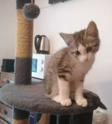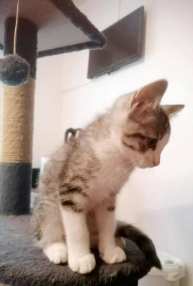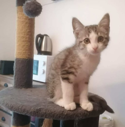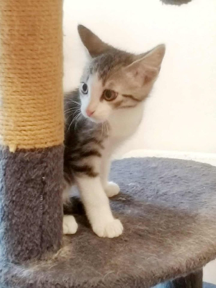 ARY est un chaton de 2 mois, tigré blanc, au regard tendre et plein d’innocence. Ce petit trésor a eu un début de vie difficile : retrouvé seul, tremblant sous une voiture où il cherchait un peu de chaleur. ?