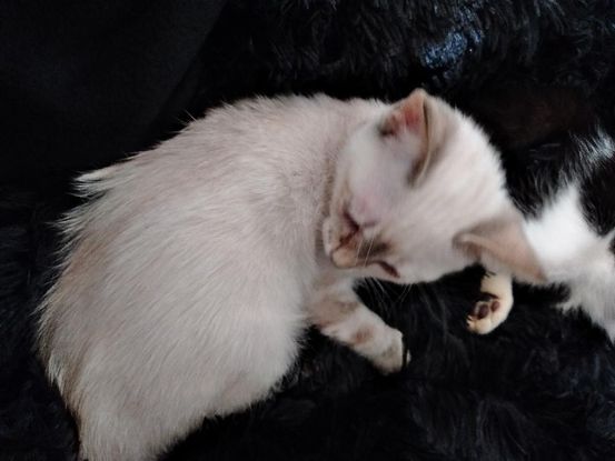 Tipex est minette adorable. Elle s'entend avec tout le monde. Il ne faut pas d'extérieur pour cette minette qui a des problemes d'équilibre. C'est une boite à ronron, caline.