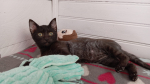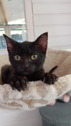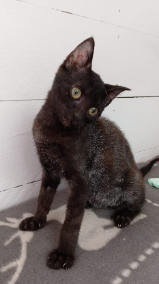 C’est un chatonne qui recherche beaucoup le contact de l’humain. Ses couleurs de pelage unique lui donne un charme fou et c’est une adorable petite puce.