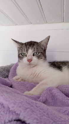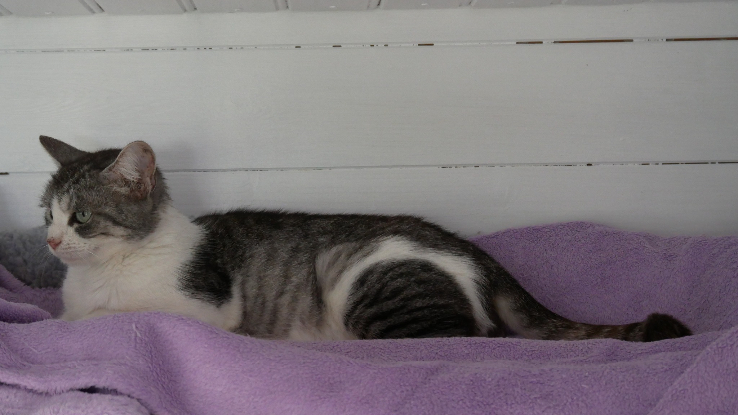 Elle est identifiée par puce électronique, stérilisée, vaccinée TCL, testée FIV-/FeLV- et déparasitée.