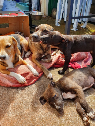Son histoire : FRIDA a été trouvée dans un champ de cannes avec ses 5 frères et sœurs. Déposé avec seulement une gamelle de riz et de l'eau, elle et sa sœur se sont bien caché et la fratrie à été sauvée, sans elles !