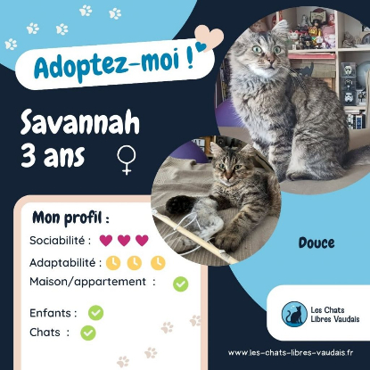 Savannah est une super minette, elle n’a aucun défaut, et mérite donc une famille tout aussi incroyable qu’elle ne l’est !
