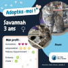 Savannah est adoptable sous contrat associatif et certificat d’engagement et de connaissance.