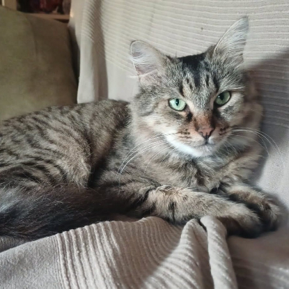 Quelle belle minette, aussi jolie que gentille. Savannah c’est un petit bonbon au miel : elle est douce, discrète, pleine de tendresse. C’est un chat facile à vivre, qui ne réclame qu’une chose : des plaids douillets, et des séances de câlin avec ses humains. Savannah est aussi joueuse, gourmande et elle apprécie qu’on lui parle. Savannah comprend d’ailleurs très bien ce qu’on lui dit, elle est très intelligente. La louloute offrira son coeur aux humains qui voudront bien lui apporter du bonheur et de l’amour.