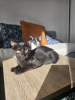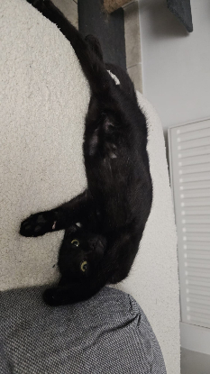 Ma particularité : j'ai une légère ataxie des pattes arrières mais cela ne change en rien ma vie, je cours et saute comme les autres chatons. Cela se manifeste par une petite faiblesse lorsque je prends appuie sur mes pattes arrières.