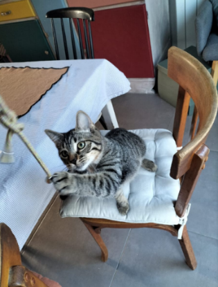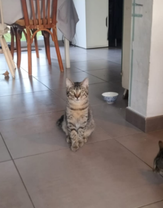 Je n’ai pas peur des autres chats car il y a déjà 2 adultes dans ma famille d’accueil et j’ai 2 frères et 1 sœur avec qui je partage mes journées.