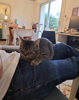 Issu d’une portée de 4 chatons, ma mère a été trouvée dans un jardin et n’était pas stérilisée, elle a déjà eu une première portée et ensuite nous sommes arrivés au printemps 2025. Je vivais dehors lorsque j'ai été recueilli dans la maison de ma famille d’accueil fin août 2025.