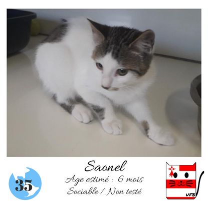 URGENCE EUTHANASIE ! Saonel est un mâle de 6 mois sociable qui vous attend dans une fourrière du 35. ATTENTION SORTIE AU PLUS TARD LE 9/10/2020 (avant euthanasie) ! Pour adopter, c'est facile : ➡️ On se rend sur la page facebook d'Urgence Fourrière de Bretagne (UFB) -> https://www.facebook.com/sosfourrieresbreizh/ ➡️ On vient en message privé sur la page UFB ➡️ On remplit le questionnaire ➡️ Si le questionnaire est validé, on se rend disponible pour la pré-visite ➡️ On se rend aussi disponible pour venir chercher le loulou en fourrière Les chats sortent de fourrière primo-vaccinés et identifiés. Restera à charge de l’adoptant le rappel de vaccin et la stérilisation qui est OBLIGATOIRE. Les femelles en fourrière ayant été trouvées dans la rue, il y a fort à parier que nombre d'entre elles en âge de l'être soient gestantes ... ---- A PROPOS D'URGENCE FOURRIERE DE BRETAGNE (UFB) Nous sommes un COLLECTIF d'ASSOCIATIONS DE PROTECTION ANIMALE (qui rassemble notamment Moustaches et Compagnie, Bêtes de Scène, les Pachas, Chats Libres de Berné, etc, etc....) Le BUT de ce collectif d'associations est donc de SORTIR ces animaux des fourrières surchargées en les faisant ADOPTER de manière LEGALE par des familles ou en leur trouvant des FAMILLES D'ACCUEIL lorsque des places en association se libèrent.