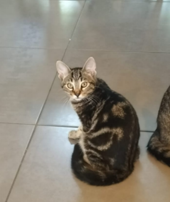 Issue d’une portée de 4, ma maman a été trouvée dans un jardin où elle n’était pas stérilisée. Après une première portée, nous sommes arrivés au printemps 2025. J’ai grandi dehors jusqu’à ce qu’une gentille famille d’accueil m’ouvre sa porte fin août.