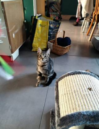 Je suis une petite chatte encore un peu craintive, mais ma curiosité l’emporte : j’aime m’approcher des humains, observer et surtout… jouer ! J’adore courir partout, déplacer mes balles et attraper tout ce qui roule ou fait du bruit. Je suis active surtout le matin et en fin d’après-midi.