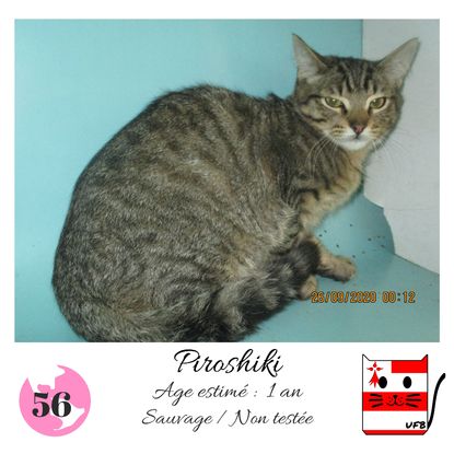 URGENCE EUTHANASIE ! Piroshiki est une femelle de 1 an sauvageonne (un comportement normal en fourrière) qui vous attend dans une fourrière du 56. ATTENTION SORTIE AU PLUS TARD LE 9/10/2020 (avant euthanasie) ! Pour adopter, c'est facile : ➡️ On se rend sur la page facebook d'Urgence Fourrière de Bretagne (UFB) -> https://www.facebook.com/sosfourrieresbreizh/ ➡️ On vient en message privé sur la page UFB ➡️ On remplit le questionnaire ➡️ Si le questionnaire est validé, on se rend disponible pour la pré-visite ➡️ On se rend aussi disponible pour venir chercher le loulou en fourrière Les chats sortent de fourrière primo-vaccinés et identifiés. Restera à charge de l’adoptant le rappel de vaccin et la stérilisation qui est OBLIGATOIRE. Les femelles en fourrière ayant été trouvées dans la rue, il y a fort à parier que nombre d'entre elles en âge de l'être soient gestantes ... ---- A PROPOS D'URGENCE FOURRIERE DE BRETAGNE (UFB) Nous sommes un COLLECTIF d'ASSOCIATIONS DE PROTECTION ANIMALE (qui rassemble notamment Moustaches et Compagnie, Bêtes de Scène, les Pachas, Chats Libres de Berné, etc, etc....) Le BUT de ce collectif d'associations est donc de SORTIR ces animaux des fourrières surchargées en les faisant ADOPTER de manière LEGALE par des familles ou en leur trouvant des FAMILLES D'ACCUEIL lorsque des places en association se libèrent.