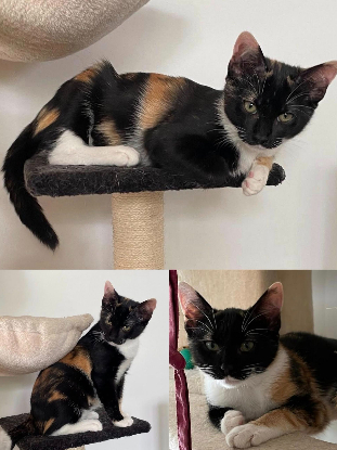Voici Aura, une adorable chatonne de 3 mois au pelage écaille de tortue aussi unique que sa personnalité.