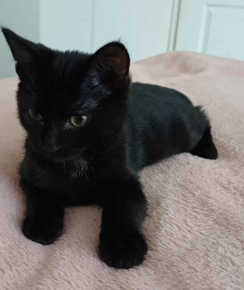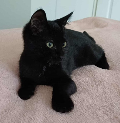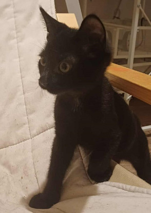AKIKO est un adorable chaton noir de 3 mois environ. Au premier abord timide, ce petit chat devient une vrai machine a ronron une fois en confiance. La nature lui a fait une petite blague a la naissance.
