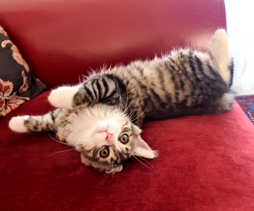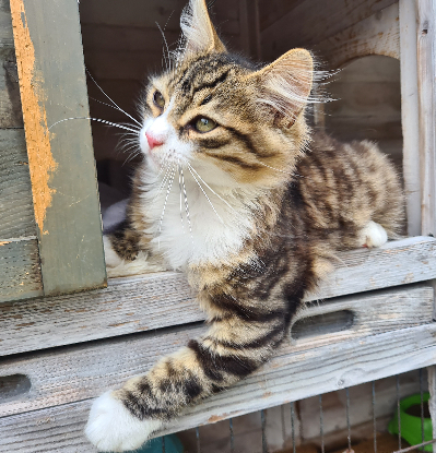 Lizzard est un chaton adorable qui sait très vite s'adapter aux nouvelles situations. Il est très câlin et ronronneur. Joueur et curieux de tout. Il est doux, il ne sort pas les griffes. Il est ok congénères et ok chiens.