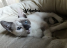 Calme et douce, elle aime le confort et la douceur des coussins « moumoute ». Elle est joueuse. Elle s’entend bien avec ses congénères.