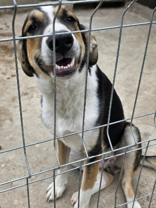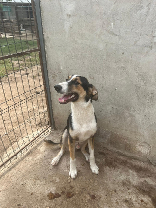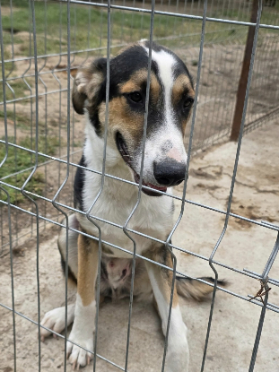 Apatou a grandit au refuge. Il a vécu avec sa fratrie en enclos et est maintenant seul en box. Lors du voyage des bénévoles en mai 2025, il a apprécié passer du temps avec elles. Il est affectueux et plutôt en retrait de la meute. C'est un chien très sociable avec les humains comme ses congénères. Lors de la visite des bénévoles en septembre 2025, il a passé avec succès le test du harnais et il fait partit des chanceux qui ont pu aller se promener en longe près du refuge. Il a bien accepté la tension sur le harnais et la longe. Il aimait rester proche des bénévoles pour prendre des caresses. Tout s'est bien passé avec son compagnon de balade et il n'a rien dit au cheval qu'on a croisé.