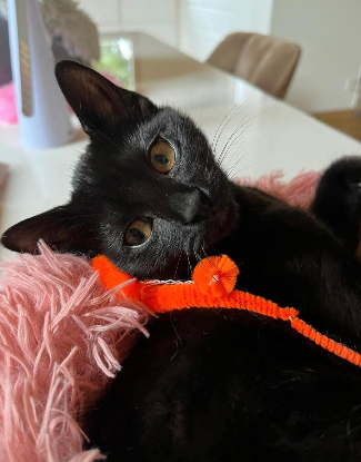 Minie est très joueuse, curieuse et a besoin que l’on s’occupe d’elle. Elle vous suivra partout dans la maison. Elle aura besoin de présence pour s’épanouir et de câlins. Un vrai petit chat chien.
