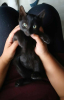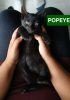 Petit mâle noir, propre. Popeye a un doux regard attendrissant. Timide et réservé il aura besoin de temps pour avoir confiance et se livrer à sa famille. Il est en contact avec des grands et des enfants et ne montre aucune agressivité. Dès que sonne l'heure du jeu il oublie sa peur et se joint à la fratrie pour jouer.