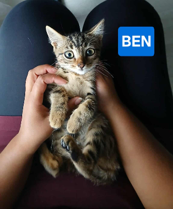 Petit mâle tigré poils mi longs, propre. Ben a un regard de petit coquin. Timide et réservé il aura besoin de temps pour avoir confiance et se livrer à sa famille. Il est en contact avec des grands et des enfants et ne montre aucune agressivité.