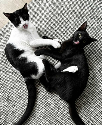 Ces deux chatons sont inséparables : ils mangent, dorment et jouent ensemble. Leur complicité est touchante et leurs “matchs de catch félin” improvisés sont un vrai spectacle à la maison ! Oussine rassure Safia, et elle, de son côté, ne manque jamais de le suivre dans ses aventures.
