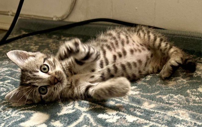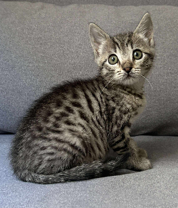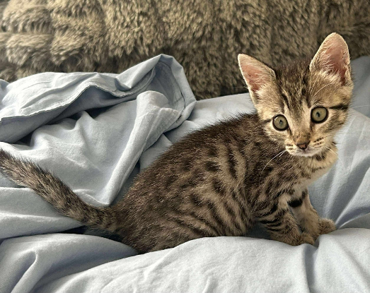 C’est une vraie exploratrice : elle grimpe partout, joue sans peur, s’amuse avec la serpillière et adore ses copains chats plus grands. Un peu gloutonne (avec un charme fou), elle reste toujours câline : après ses jeux, elle vient se blottir contre vous pour s’endormir en ronronnant.