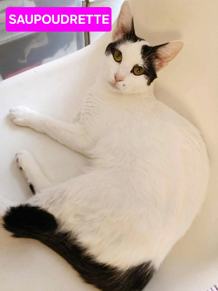 SAUPOUDRETTE et ses chatons : PALJETI ET POUDRÉE (duo a adopter ensemble), BRILHO, STRASS, LUMIÈRE et SCINTILLE.