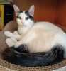 Arrivée amaigrie à l'association, cette maman courage s'est toujours bien occupée de ses bébés. C'est une petite chatte blanche et noire pleine de douceur à l'image de son pelage extrêmement doux.
