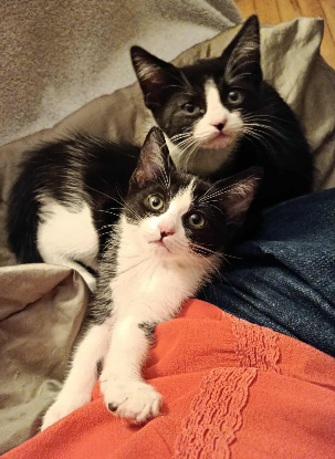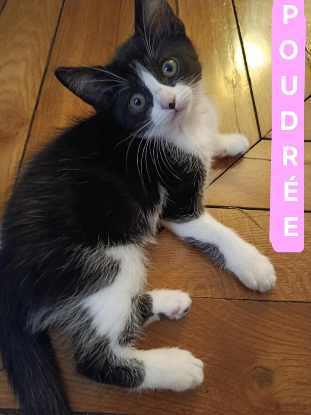 Ces jolies chatonnes noires et blanches forment un duo inséparable. Très intégrées avec leurs soeurs, Paljeti et Poudrée aiment se retrouver pour jouer et câliner. Elles passent leur temps à se pourchasser, se bagarrer pour au final s'endormir l'une contre l'autre. Ces véritables catwoman avec leur magnifique "masque noir" sont très attachantes et aiment venir à la rencontre de l'humain pour réclamer des câlins.