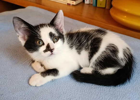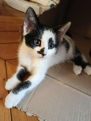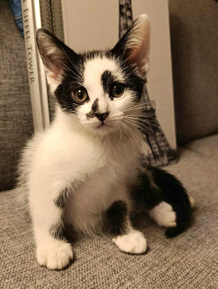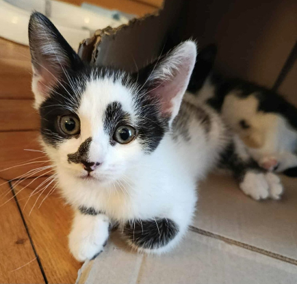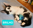 Seul mâle de la fratrie, Brilho est un magnifique chaton au pelage noir et blanc. Gourmand et très joueur, il aime faire la bagarre avec ses soeurs. Une fois le jeu fini, il apprécie de se faire caresser et ronronne de bonheur. Ce petit chenapan promet de devenir un compagnon aussi attachant qu’amusant. Brilho est un chaton propre.