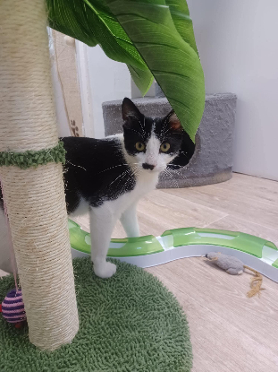 Croquette est une minette d’environ 8 mois, très caline, pot de colle et joueuse. Elle s’entend bien avec les chats et les chiens si ceux-ci sont calmes.