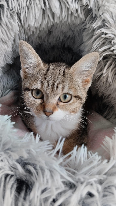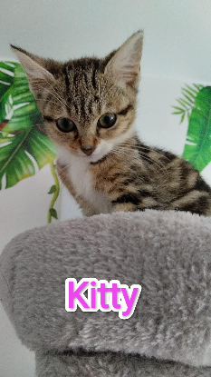 Kitty est un adorable petit chaton femelle de 3 mois. Elle est sociable, douce, câline et joueuse. Un vrai petit amour.