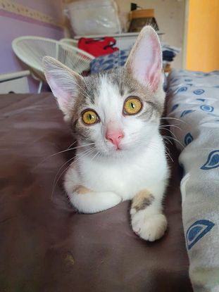 Kamara est une femelle bleue et blanche d'environ 5 mois. Kamara est une petite chatonne équilibrée et joueuse ! C'est aussi une petite machine à ronron qui adore les caresses ! Elle a reçu plusieurs soins vétérinaires : → identification par une puce électronique → vaccination contre le typhus et le coryza (second rappel à faire) Sa stérilisation est obligatoire à 6 mois. Elle est adoptable contre une participation aux frais vétérinaires