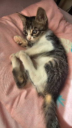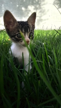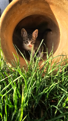 DUENDE a été abandonné dans une caisse de transport devant la maison de l'une de nos bénévoles. Il se trouvait avec sa maman ainsi que ses frères et soeurs.