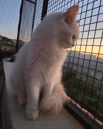 Son activité préférée est de ronronner, collée à ses humains, après avoir fait une petite sieste au soleil sur son arbre à chat. C’est une vraie perle.