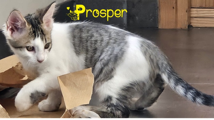 PROSPER, adorable chaton tigré gris et blanc né le 25/07/2025