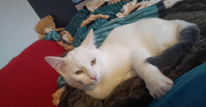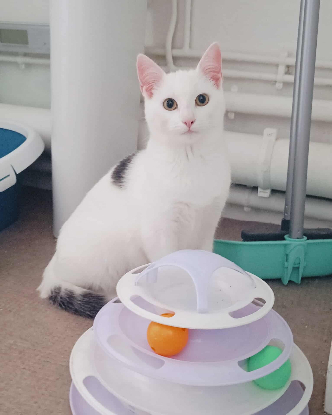 On craque pour son beau pelage blanc parsemé de quelques tâches grises ❤️ Alors oui il n'a plus sa toute petite tête de bébé chat mais 6 mois ce n'est quand même pas vieux ! Il reste joueur, câlin et plein de potentiel d'apprentissage comme tout jeune chat !