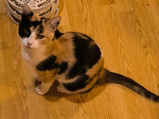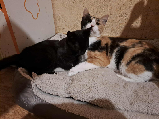 Notre maman chat tricolore a bien elevé ses chatonnes et recherche désormais son coin tranquille, rien qu'à elle !