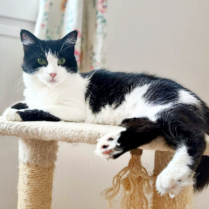 Athéna ne fait pas de bêtises en intérieur : elle est propre et utilise son arbre à chat pour ses griffes.