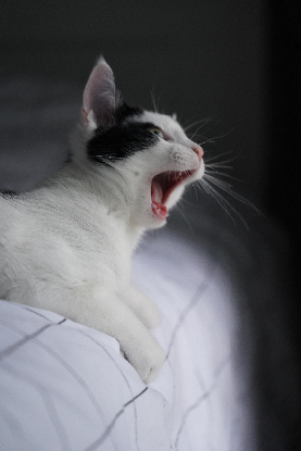Il sait être bavard (en grognant. C'est mignon) et aime s'amuser avec ses copains chats Rourou et Ankou.