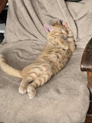 Incendio est un adorable grand chaton, à l'aise et bien dans ses pattes, il est adeptes de siestes dans des positions improbables !