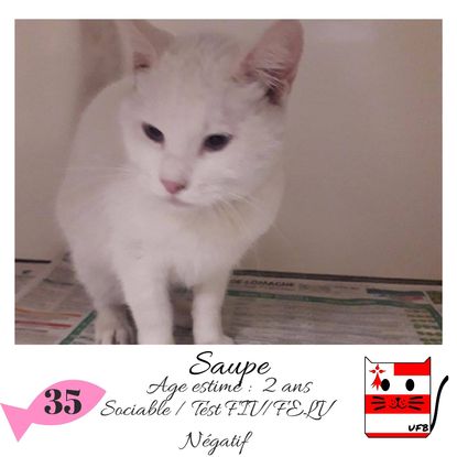 URGENCE EUTHANASIE ! Saupe est une femelle de 2 ans sociable qui vous attend dans une fourrière du 35. ATTENTION SORTIE AU PLUS TARD LE 16/10/2020 (avant euthanasie) ! Pour adopter, c'est facile : ➡️ On se rend sur la page facebook d'Urgence Fourrière de Bretagne (UFB) -> https://www.facebook.com/sosfourrieresbreizh/ ➡️ On vient en message privé sur la page UFB ➡️ On remplit le questionnaire ➡️ Si le questionnaire est validé, on se rend disponible pour la pré-visite ➡️ On se rend aussi disponible pour venir chercher le loulou en fourrière Les chats sortent de fourrière primo-vaccinés et identifiés. Restera à charge de l’adoptant le rappel de vaccin et la stérilisation qui est OBLIGATOIRE. Les femelles en fourrière ayant été trouvées dans la rue, il y a fort à parier que nombre d'entre elles en âge de l'être soient gestantes ... ---- A PROPOS D'URGENCE FOURRIERE DE BRETAGNE (UFB) Nous sommes un COLLECTIF d'ASSOCIATIONS DE PROTECTION ANIMALE (qui rassemble notamment Moustaches et Compagnie, Bêtes de Scène, les Pachas, Chats Libres de Berné, etc, etc....) Le BUT de ce collectif d'associations est donc de SORTIR ces animaux des fourrières surchargées en les faisant ADOPTER de manière LEGALE par des familles ou en leur trouvant des FAMILLES D'ACCUEIL lorsque des places en association se libèrent.