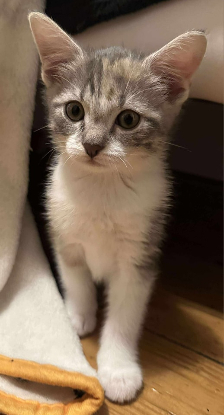 Son pelage tricolore et son beau regard vont vous faire fondre. Cette petite merveille est la plus méfiante de la fratrie. Mais derrière cette méfiance se cache un coeur tendre et une machine à ronrons qui ne demandent qu’à être dévoilée.