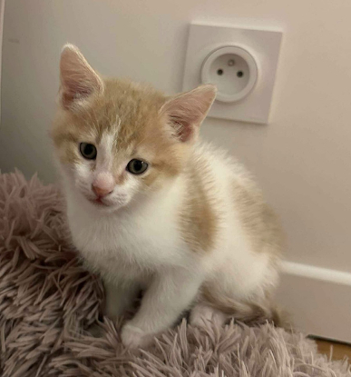 Petit loulou roux et blanc, qui lorsqu’on l’appelle pour jouer (ou manger…) répond toujours présent ! Une fois votre confiance acquise, les parties de jeux et de câlins ne cesseront plus.