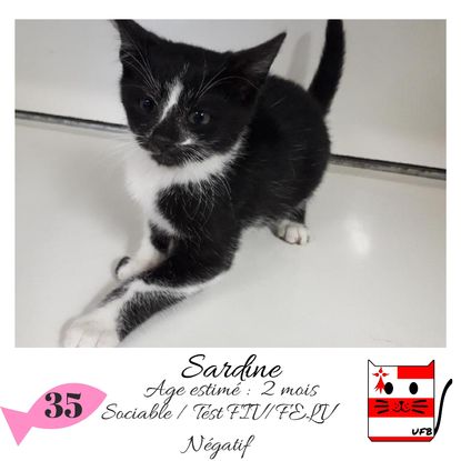 URGENCE EUTHANASIE ! Sardine est une femelle de 2 mois sociable qui vous attend dans une fourrière du 35. ATTENTION SORTIE AU PLUS TARD LE 16/10/2020 (avant euthanasie) ! Pour adopter, c'est facile : ➡️ On se rend sur la page facebook d'Urgence Fourrière de Bretagne (UFB) -> https://www.facebook.com/sosfourrieresbreizh/ ➡️ On vient en message privé sur la page UFB ➡️ On remplit le questionnaire ➡️ Si le questionnaire est validé, on se rend disponible pour la pré-visite ➡️ On se rend aussi disponible pour venir chercher le loulou en fourrière Les chats sortent de fourrière primo-vaccinés et identifiés. Restera à charge de l’adoptant le rappel de vaccin et la stérilisation qui est OBLIGATOIRE. Les femelles en fourrière ayant été trouvées dans la rue, il y a fort à parier que nombre d'entre elles en âge de l'être soient gestantes ... ---- A PROPOS D'URGENCE FOURRIERE DE BRETAGNE (UFB) Nous sommes un COLLECTIF d'ASSOCIATIONS DE PROTECTION ANIMALE (qui rassemble notamment Moustaches et Compagnie, Bêtes de Scène, les Pachas, Chats Libres de Berné, etc, etc....) Le BUT de ce collectif d'associations est donc de SORTIR ces animaux des fourrières surchargées en les faisant ADOPTER de manière LEGALE par des familles ou en leur trouvant des FAMILLES D'ACCUEIL lorsque des places en association se libèrent.