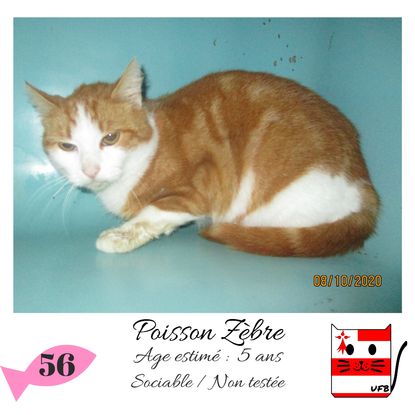 URGENCE EUTHANASIE ! Poisson Zebre est une femelle de 5 ans sociable qui vous attend dans une fourrière du 56. ATTENTION SORTIE AU PLUS TARD LE 16/10/2020 (avant euthanasie) ! Pour adopter, c'est facile : ➡️ On se rend sur la page facebook d'Urgence Fourrière de Bretagne (UFB) -> https://www.facebook.com/sosfourrieresbreizh/ ➡️ On vient en message privé sur la page UFB ➡️ On remplit le questionnaire ➡️ Si le questionnaire est validé, on se rend disponible pour la pré-visite ➡️ On se rend aussi disponible pour venir chercher le loulou en fourrière Les chats sortent de fourrière primo-vaccinés et identifiés. Restera à charge de l’adoptant le rappel de vaccin et la stérilisation qui est OBLIGATOIRE. Les femelles en fourrière ayant été trouvées dans la rue, il y a fort à parier que nombre d'entre elles en âge de l'être soient gestantes ... ---- A PROPOS D'URGENCE FOURRIERE DE BRETAGNE (UFB) Nous sommes un COLLECTIF d'ASSOCIATIONS DE PROTECTION ANIMALE (qui rassemble notamment Moustaches et Compagnie, Bêtes de Scène, les Pachas, Chats Libres de Berné, etc, etc....) Le BUT de ce collectif d'associations est donc de SORTIR ces animaux des fourrières surchargées en les faisant ADOPTER de manière LEGALE par des familles ou en leur trouvant des FAMILLES D'ACCUEIL lorsque des places en association se libèrent.