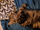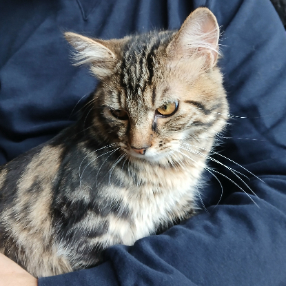 Toma vit actuellement avec des chats et chien, mais il a un petit côté provocateur/harceleur vis-à-vis des autres animaux, il sera donc sûrement plus heureux au sein d’un foyer sans animaux, ou alors, il faudra que son futur copain d’adoption sache poser ses limites clairement, pour son propre bien-être. Il est propre et se laisse facilement manipuler, Toma sera un chat de famille parfait si on prend la peine de poursuivre son éducation. Il fera le bonheur de ses adoptants.