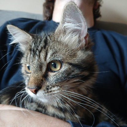 Toma est un tout jeune adulte plein de vie et très câlin. Il ronronne très facilement et n’hésitera pas à vous sauter au cou pour avoir votre attention (et surtout, des papouilles !). C’est aussi un grand joueur, mais qui a la mauvaise manie de mordiller les mains dès que le jeu devient trop intense, il faudra donc travailler ce point-là, notamment en stoppant les jeux, et en l’invitant à jouer avec des jouets exclusivement.