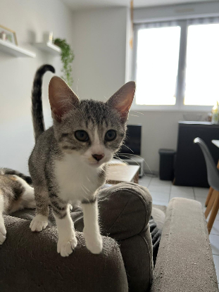 Vive, curieuse et pleine d’énergie, j’adore explorer, grimper partout et inventer de nouveaux jeux. Câline et sociable, je viens volontiers chercher des caresses et j’aime m’endormir blottie contre vous.